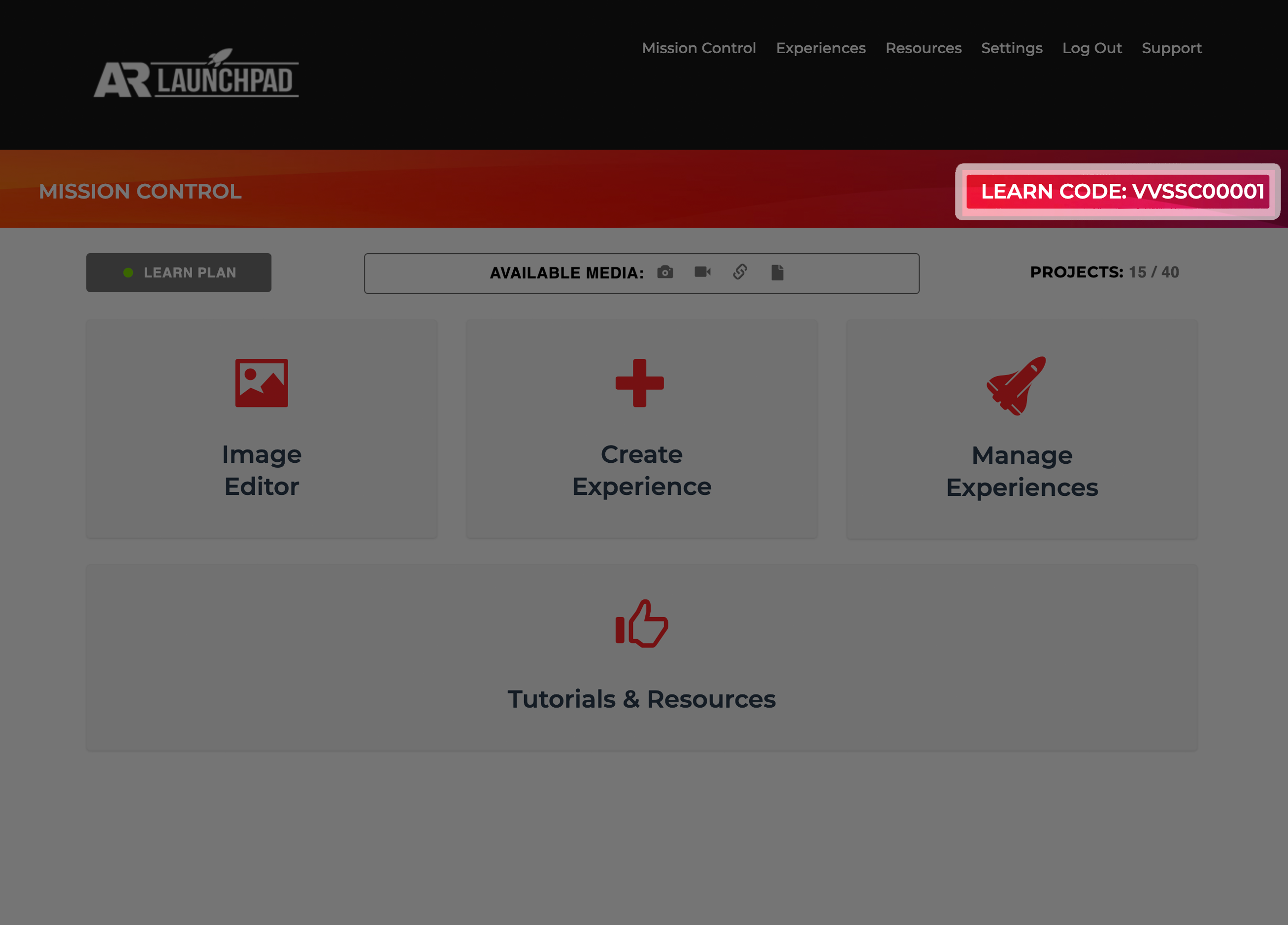 If you have an AR LaunchPad LEARN account, your dashboard will have a code up towards the top right. This code is what you and other people will enter into the LEARN side of the free Experience Viewer app to interact with your content.
